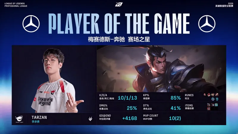Tarzan赵信打出10/1/13战绩,拿下AL对阵NIP第四局MVP