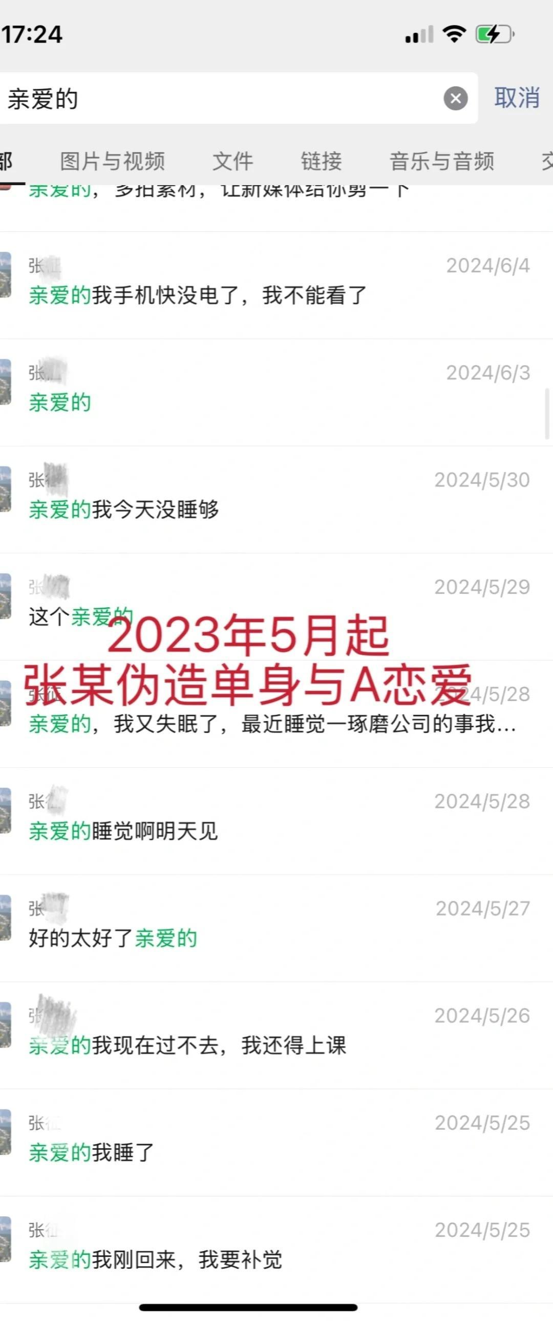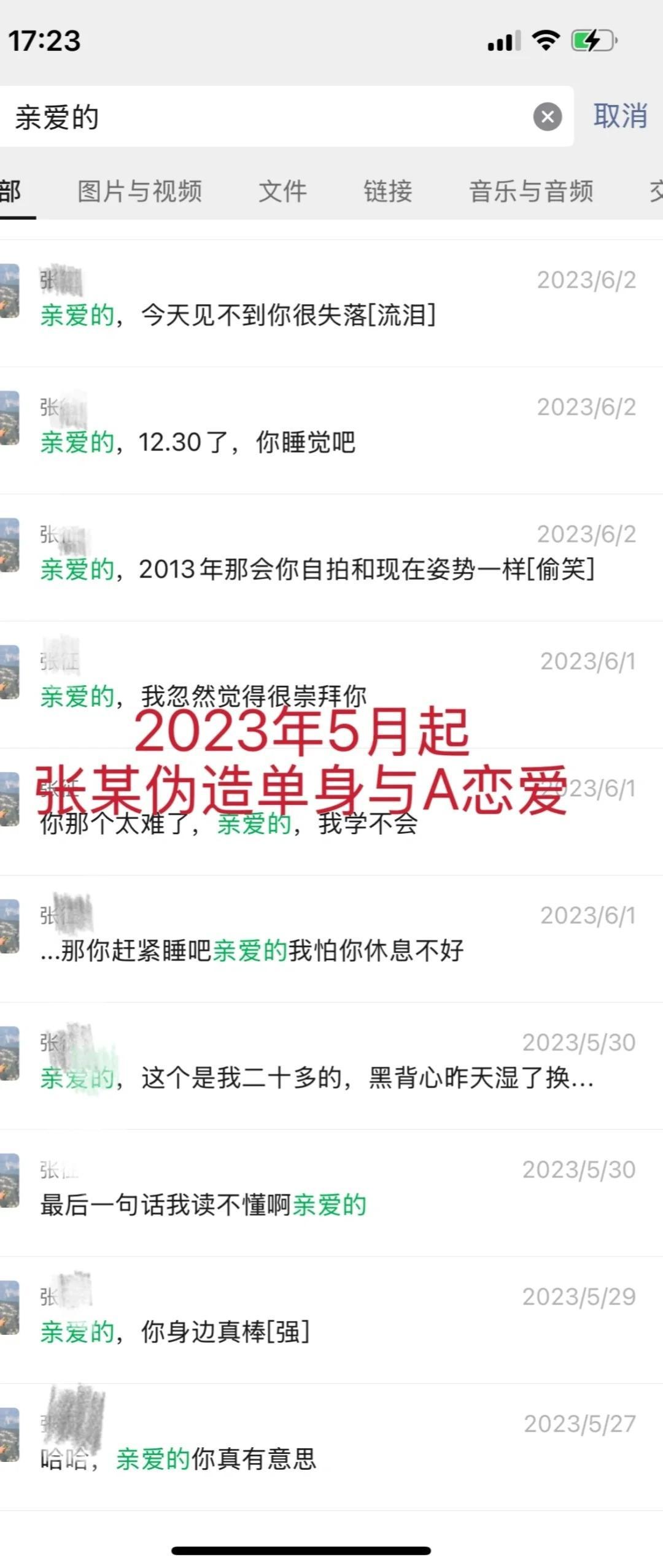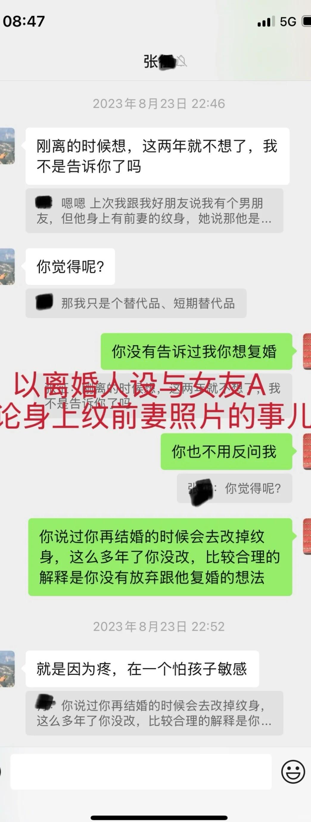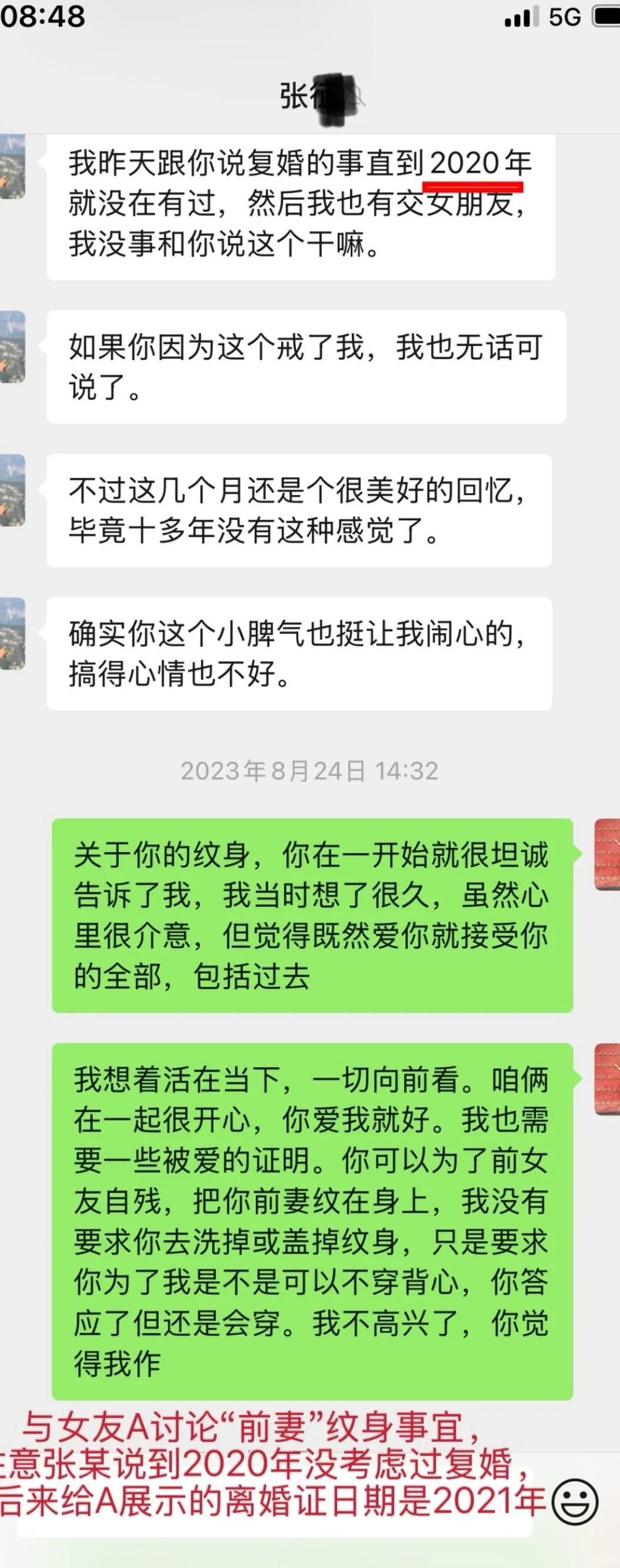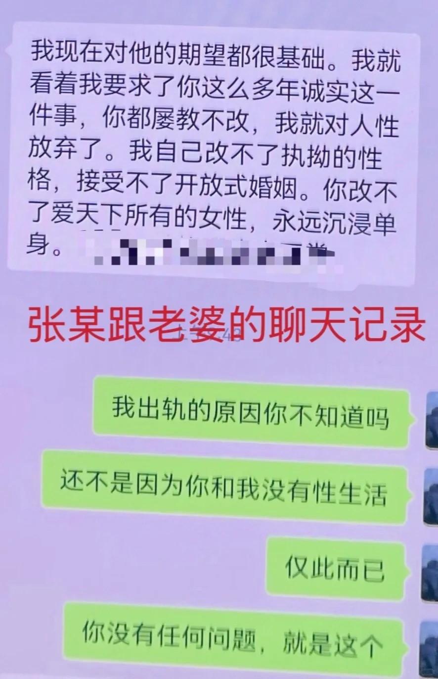 偶然机会,A看到了张某跟他所谓“前妻”其实是老婆的对话记录,才知道真心付出两年多,竟然是“被小三”!